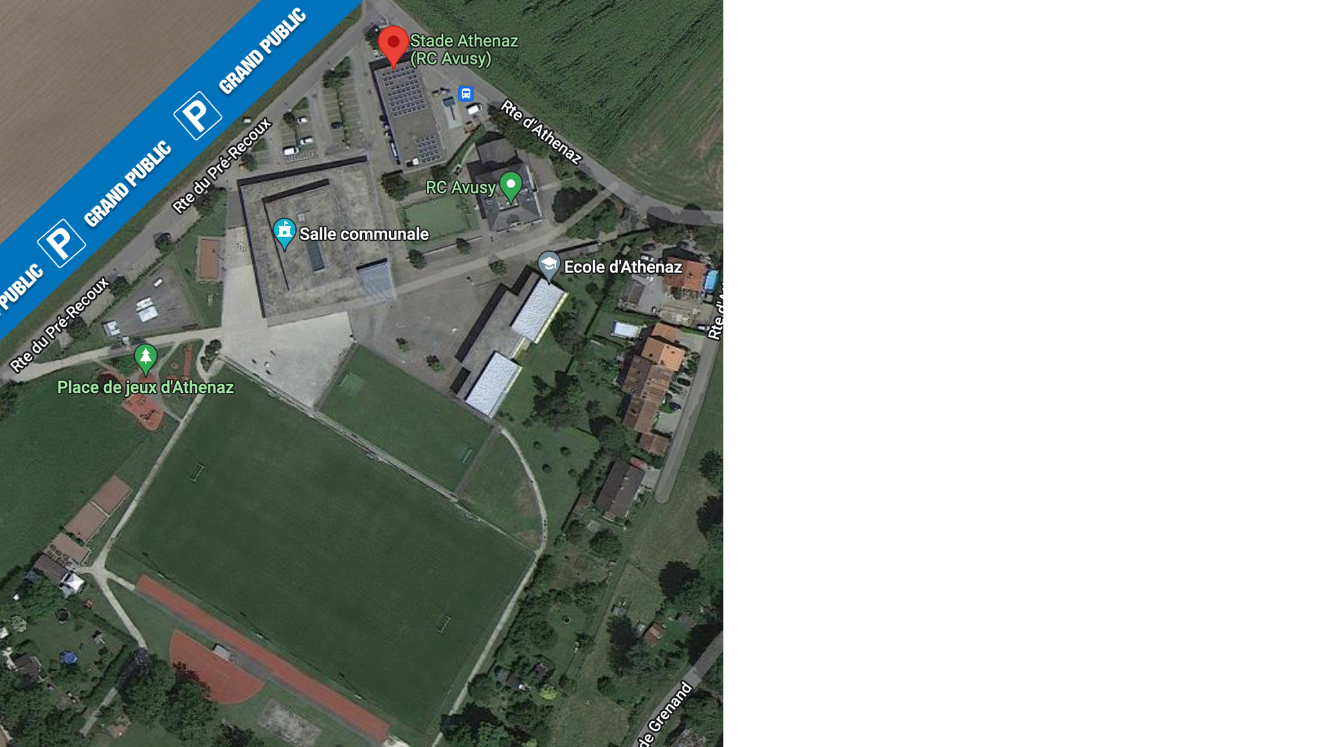 - Adresse du stade : Stade Athenaz, Route du Pré-Recoux, 1285 Avusy