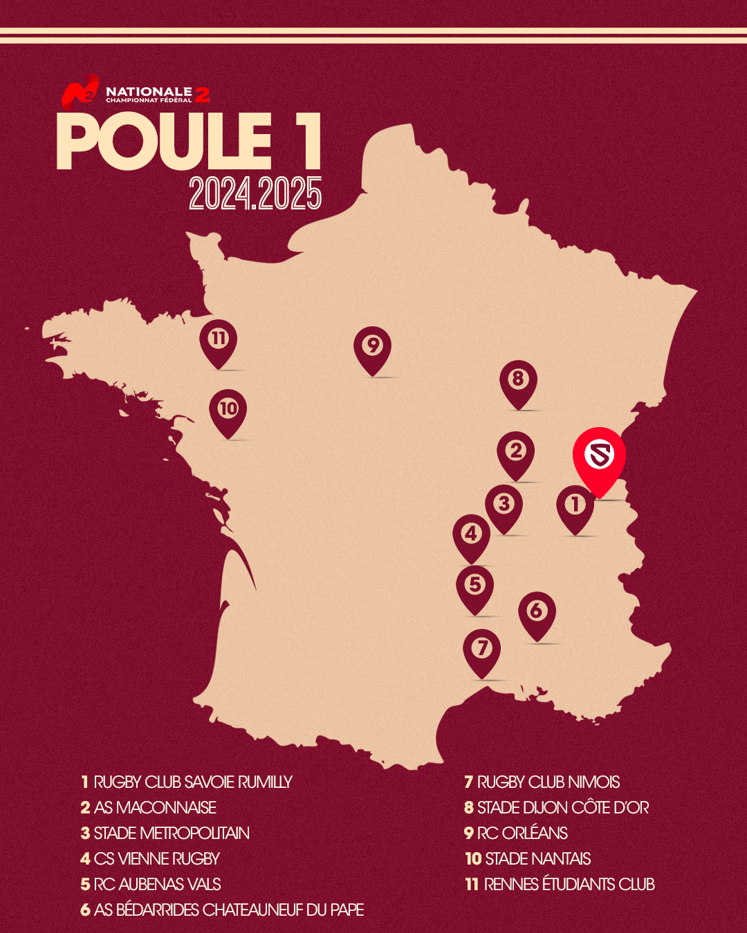 Le calendrier 2024-2025 de Nationale 2 est sorti ! Découvrez toutes les dates des rencontres ainsi que les équipes qui constitueront notre poule.